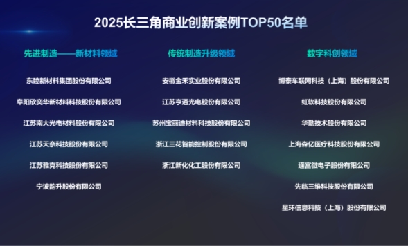 3月31日,2025长三角创新案例TOP50(以下简称:创新案例TOP50)发布会在上海召开。紧密围绕新质生产力、科技自立自强以及国内外双循环三大年度主题,历经11个月,5轮筛评,65位产学研专家交叉评审,创新案例TOP50从4000余家优秀候选企业中脱颖而出。这不仅充分展现了长三角地区科技创新与产业创新的雄厚实力,更为中国式现代化的区域先行探索提供了鲜活生动的实践样本。