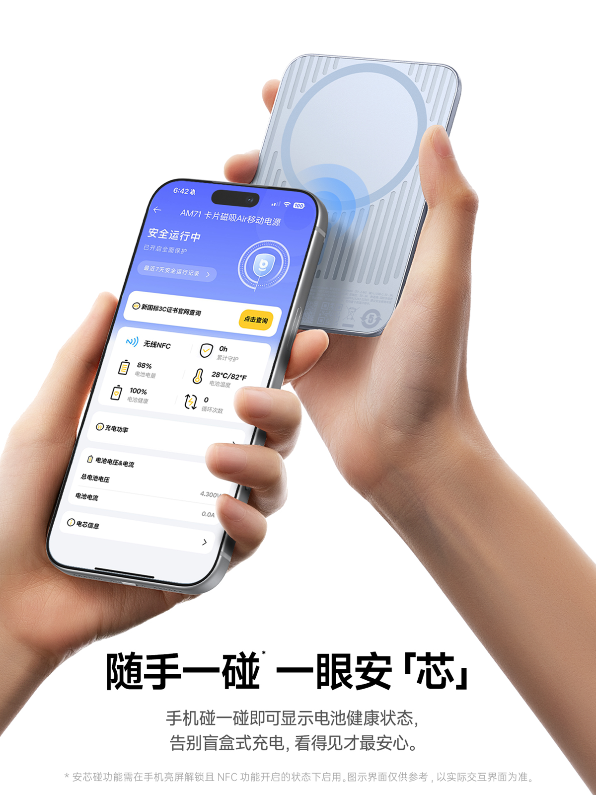 长期以来,行业安全竞争停留在“满足标准”的应试思维,安全是“成本项”而非“价值项”。但倍思以航天级认证打破这一困局:将安全从“达标合规”升级为“核心竞争力”,把航天精神中的严谨、极致、可靠,融入产品全链路研发。以倍思卡片磁吸 Air 为例,其安全革新绝非单点强化,而是全维度系统升级:电芯层面:采用新一代固液混合电芯,通过严苛的针刺、高温滥用等测试;结构层面:搭载铝合金机身与防火玻纤面板,搭配冰川温控矩阵,控温表现比国标低10℃;技术层面:首创NFC安芯碰技术,让电芯温度、循环次数、健康度等数据可视化,安全从“不可感知”变为“可监测、可信任”;体验层面:机身薄至6.9mm,兼顾极致安全与便携无感,破解“安全与轻薄不可兼得”的行业难题。