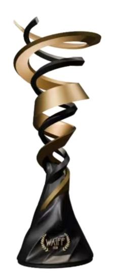WAIFF奖杯设计中的螺旋线条,象征着创作灵感的不断攀升与演进。在成品呈现上,黑金交织的流线型构造极具现代感,也是整件作品的点睛之笔。