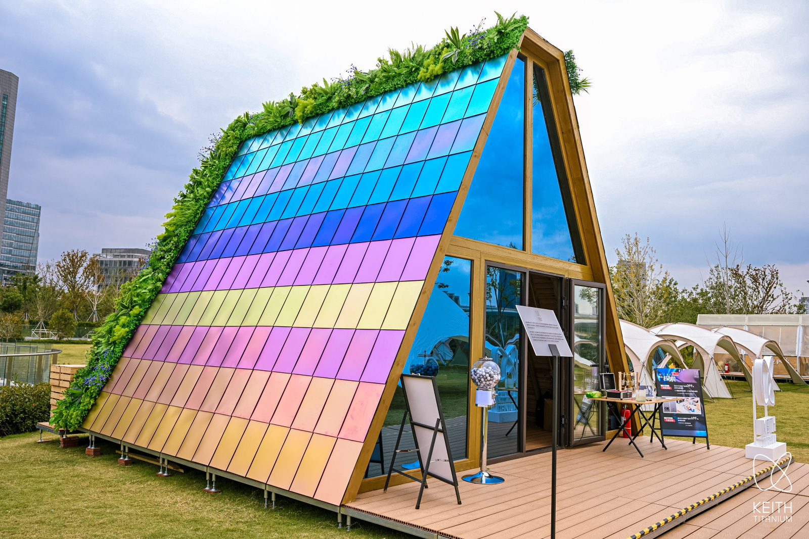 钛金属被誉为“太空金属”,具有“轻量化、高强度、耐腐蚀”等独特优势,KEITH铠斯打造的“彩色钛屋”快闪,正是将钛金属的卓越性能引入建筑领域的一次全新尝试。