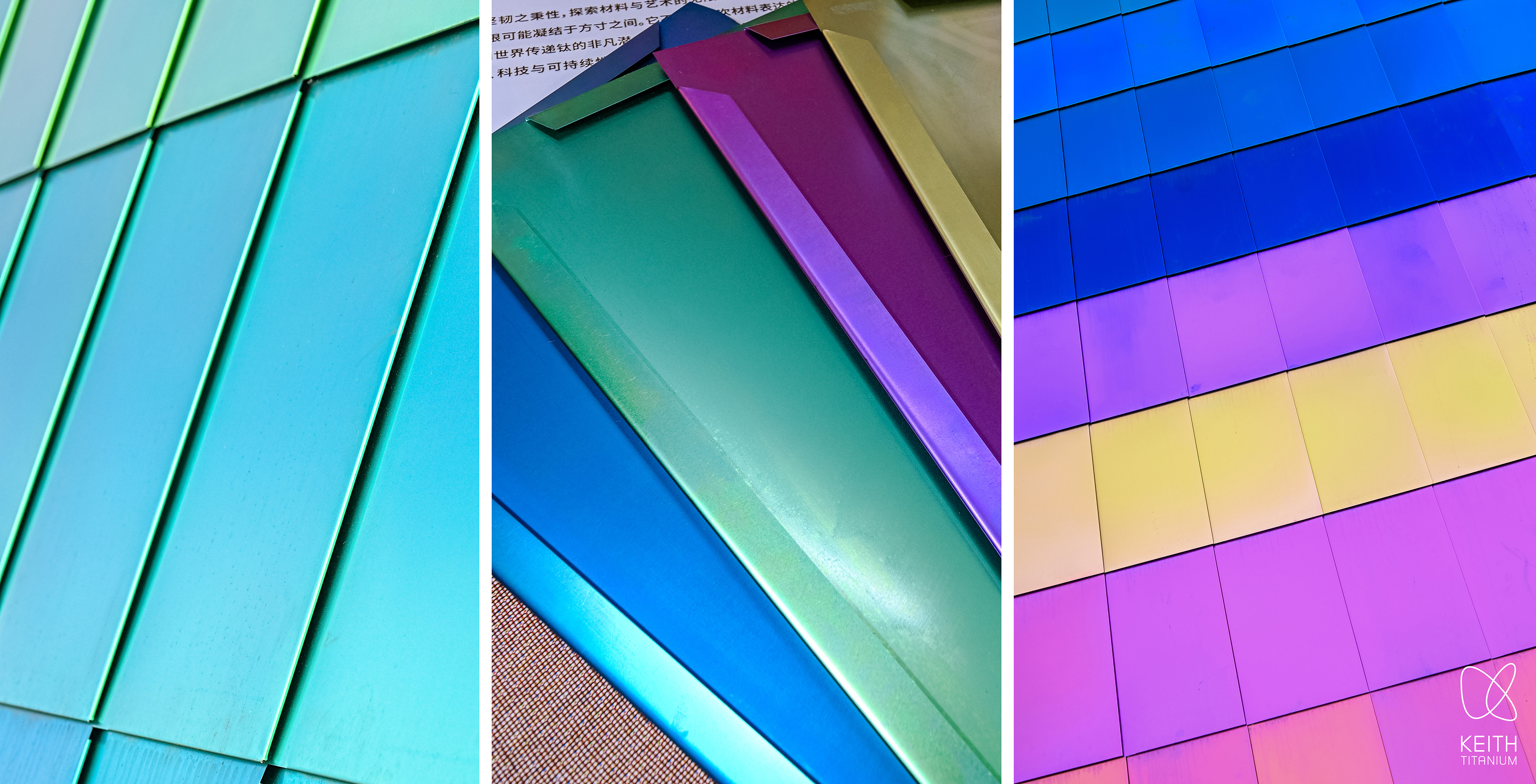 彩色钛板的运用,让建筑立面随着光线和视角的变化,呈现出流动的色彩——从清新的绿到深邃的蓝紫,色彩在金属表面自然渐变,打破了传统建筑材料的单调性,成为 KEITH 铠斯深耕钛金属探索 20 载的标志性应用突破,更激励着品牌对钛材质的研究和无限潜力的探索。