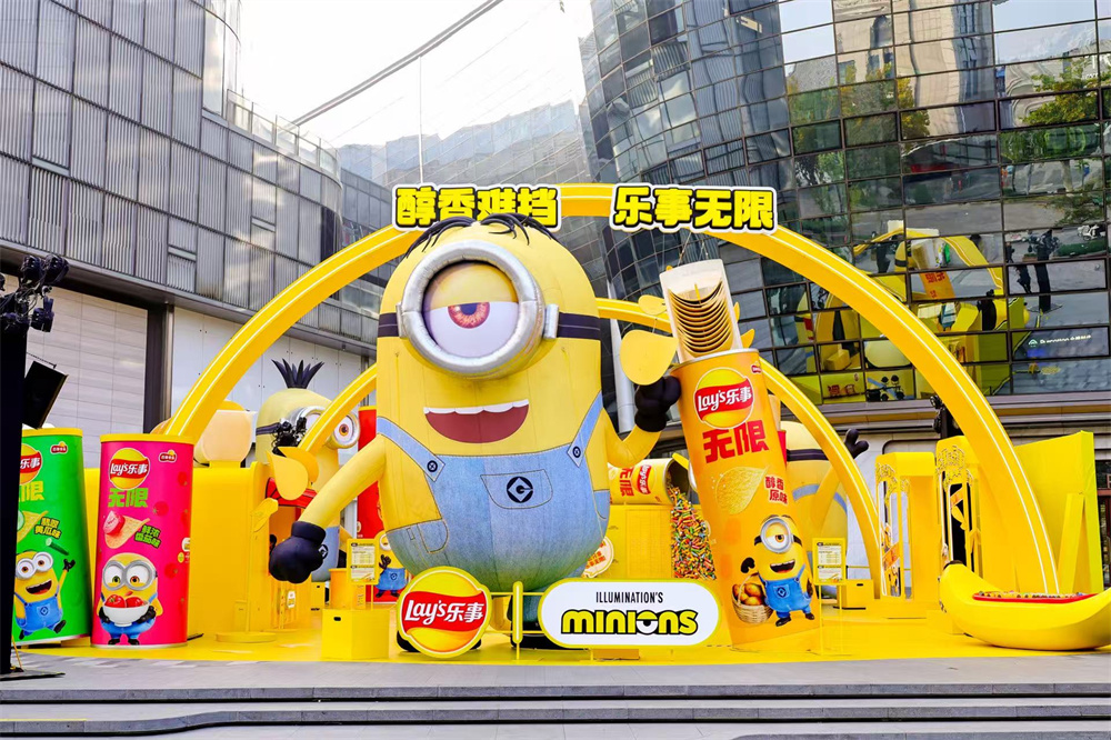 主题快闪自登陆各大城市以来,凭借萌趣的视觉设计与沉浸式互动体验,持续引发打卡热潮。步入现场,经典的乐事黄与小黄人元素交织碰撞,巨型乐事罐装置与憨态可掬的气模角色,共同营造出轻松愉悦的社交氛围。其中,互动设计紧扣“分享”主题,随处可见拉开的薯片罐和伸手可拿的薯片装置,吸引众多消费者纷纷驻足拍照。