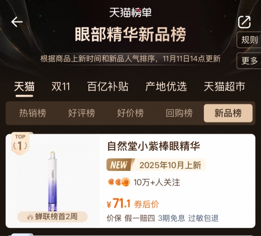 这种“核心品牌引领+细分品牌补位”的矩阵优势,使自然堂集团在双11期间全面承接了各类消费需求。