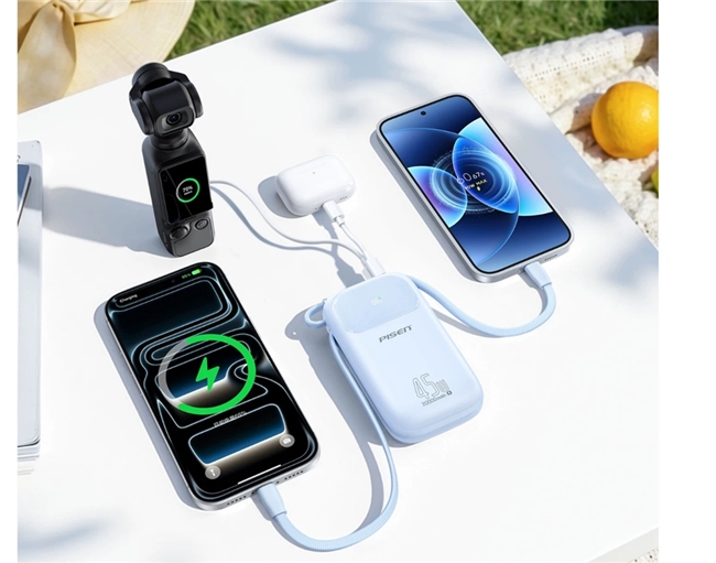 多设备同充提升效率。新品配备双Type-C线、USB-A及USB-C接口,最多可支持四台设备同时充电。这一设计精准匹配多人出行、小型团队差旅或家庭外出的共享充电需求,有效避免了设备排队等充电的尴尬。