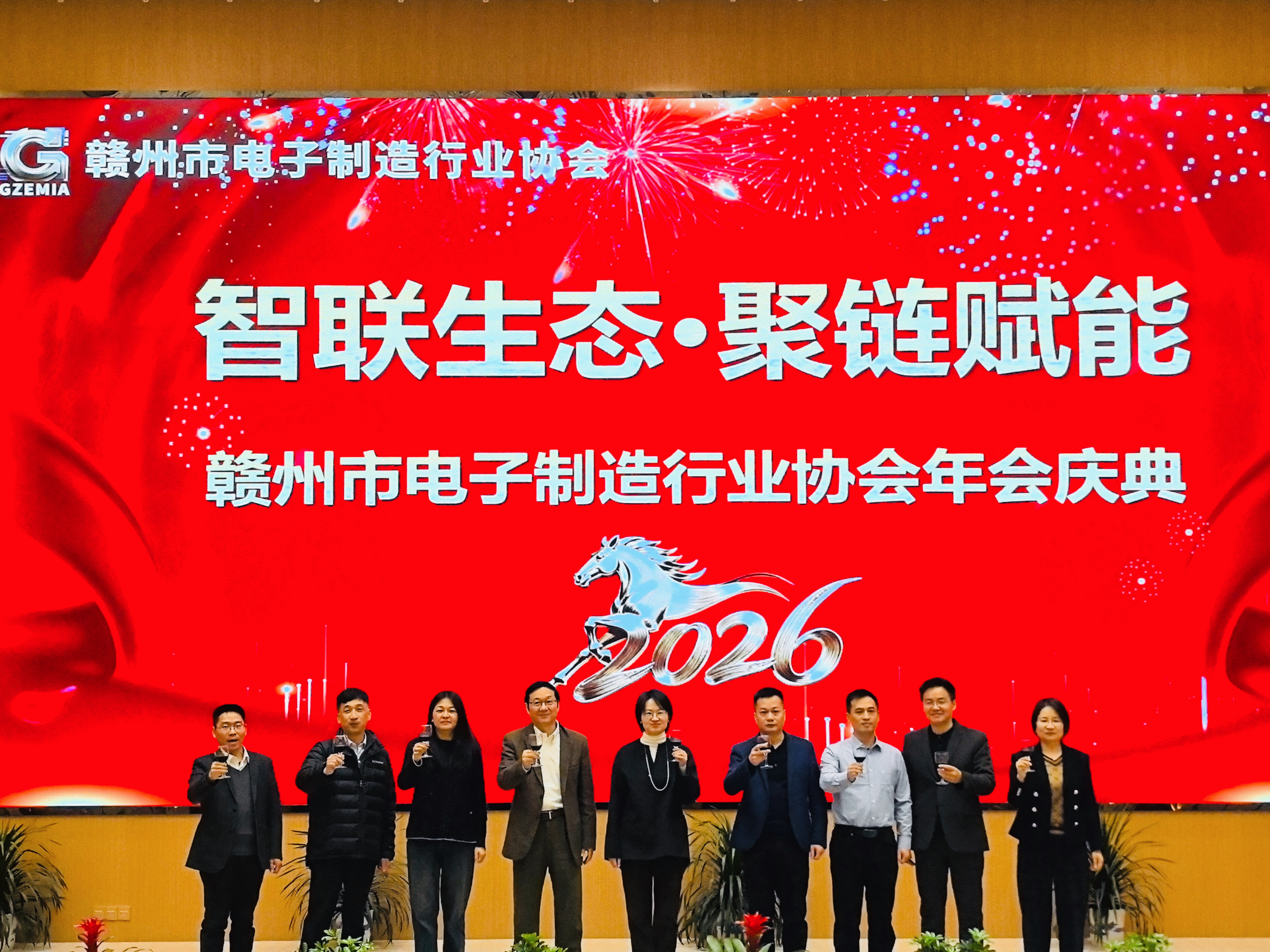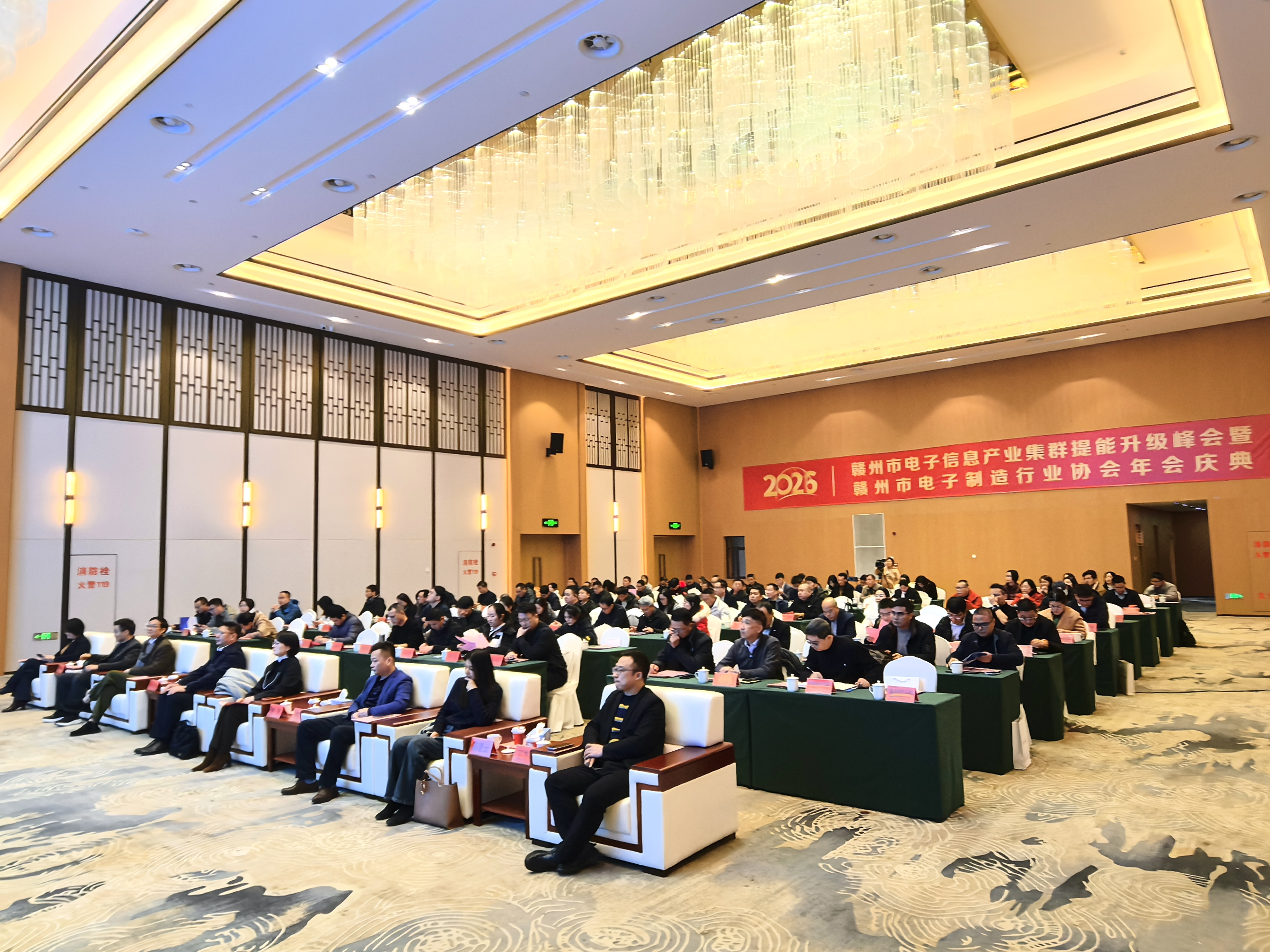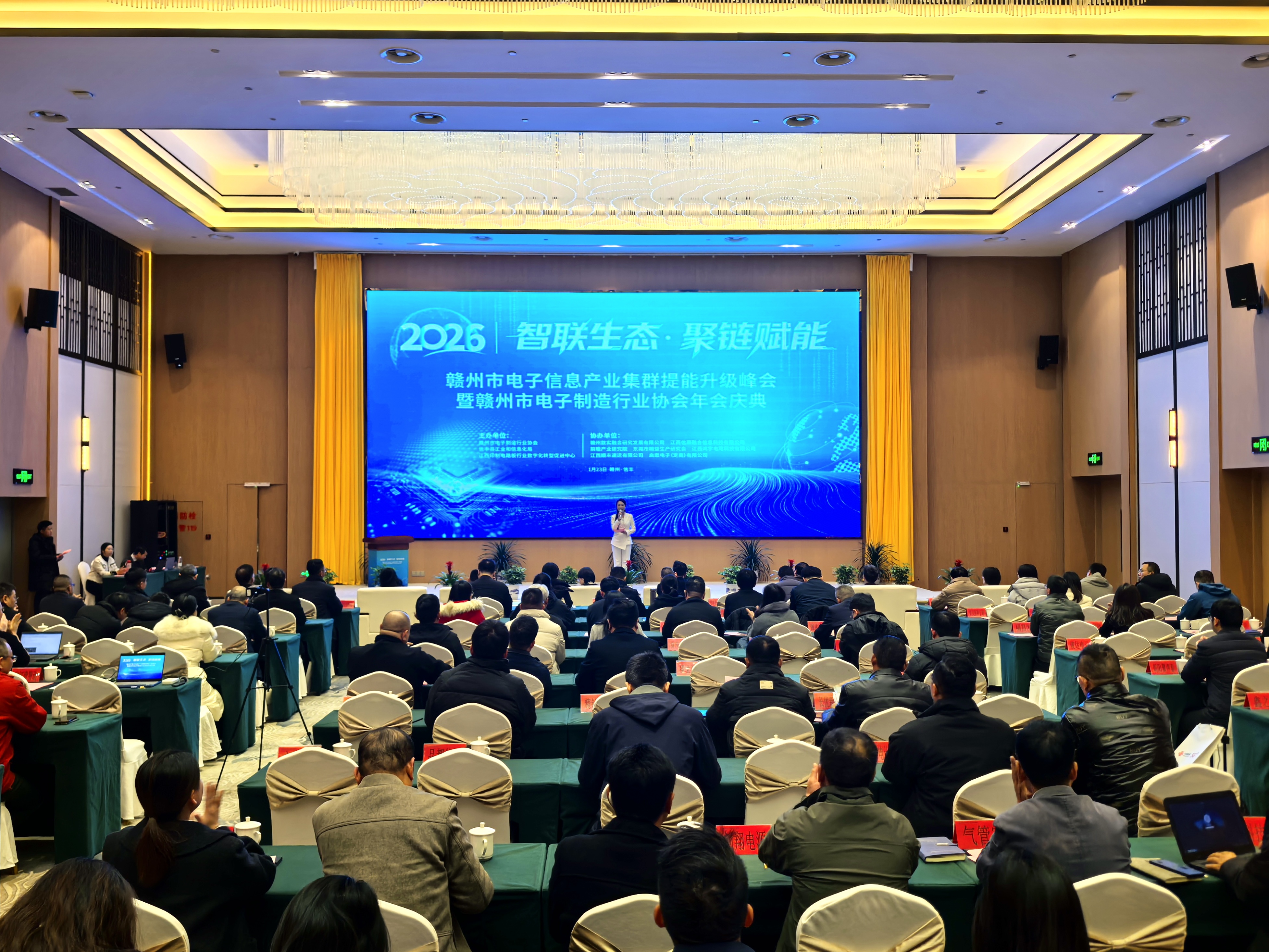 1月23日,“智联生态·聚链赋能”2026年赣州市电子信息产业集群提能升级峰会暨赣州市电子制造行业协会年会庆典在赣州信丰橙乡大酒店举行。政府相关部门、行业协会、研究机构及来自电子信息产业链上下游的百余家企业代表汇聚一堂,共探产业集群从“规模集聚”向“生态协同”进阶的实战路径。