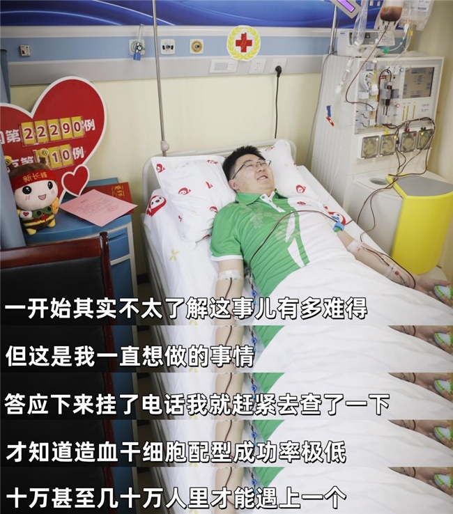 去年11月,一通来自北京市石景山区红十字会的电话,让一位航天小伙开启了一场生命的奔赴。“一开始其实不太了解这事儿有多难得,但这是我一直想做的事情,答应下来挂了电话我就赶紧去查了一下,才知道造血干细胞配型成功率极低,十万甚至几十万人里才能遇上一个。”