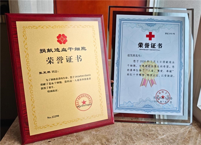 3月5日雷锋日,空军特色医学中心病房里,北京市第810例、石景山区第15例、中国航天科工二院航天长峰首位非血缘造血干细胞捐献者,青年职工张笑然心情十分激动,“没想到大二时许下的心愿,7年后的今天圆梦了!”大学时期,校园里红十字会造血干细胞捐献宣传让张笑然第一次了解到这项公益事业,一颗想要帮助他人的种子在他心中悄然埋下。“当时也不知道能不能配型成功,就想着先登记,要是真能匹配上,肯定要捐!”简单的想法,藏着最纯粹的大爱。就这样,他义无反顾加入了中华骨髓库,成为百万捐献志愿者中的一员。