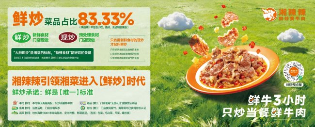 未来,湘辣辣将继续深化“鲜炒分级菜单”的落地执行。在现有83%菜品实现鲜炒的基础上,品牌将持续优化供应链体系,提升鲜炒菜品占比,让更多菜品达到“鲜炒”标准。同时,湘辣辣将进一步完善分级标准,让“鲜度”这一品质维度更加精细化、可感知。