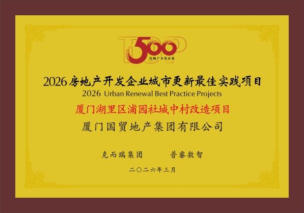近日,由国贸地产厦门公司负责实施的厦门湖里区浦园社城中村改造项目荣获克而瑞集团、普睿数智颁发的“城市更新最佳实践项目”奖项。这一行业殊荣的背后,是国贸地产对城市更新实践的持续探索,更体现了国企在民生改善与城市发展中的责任担当。