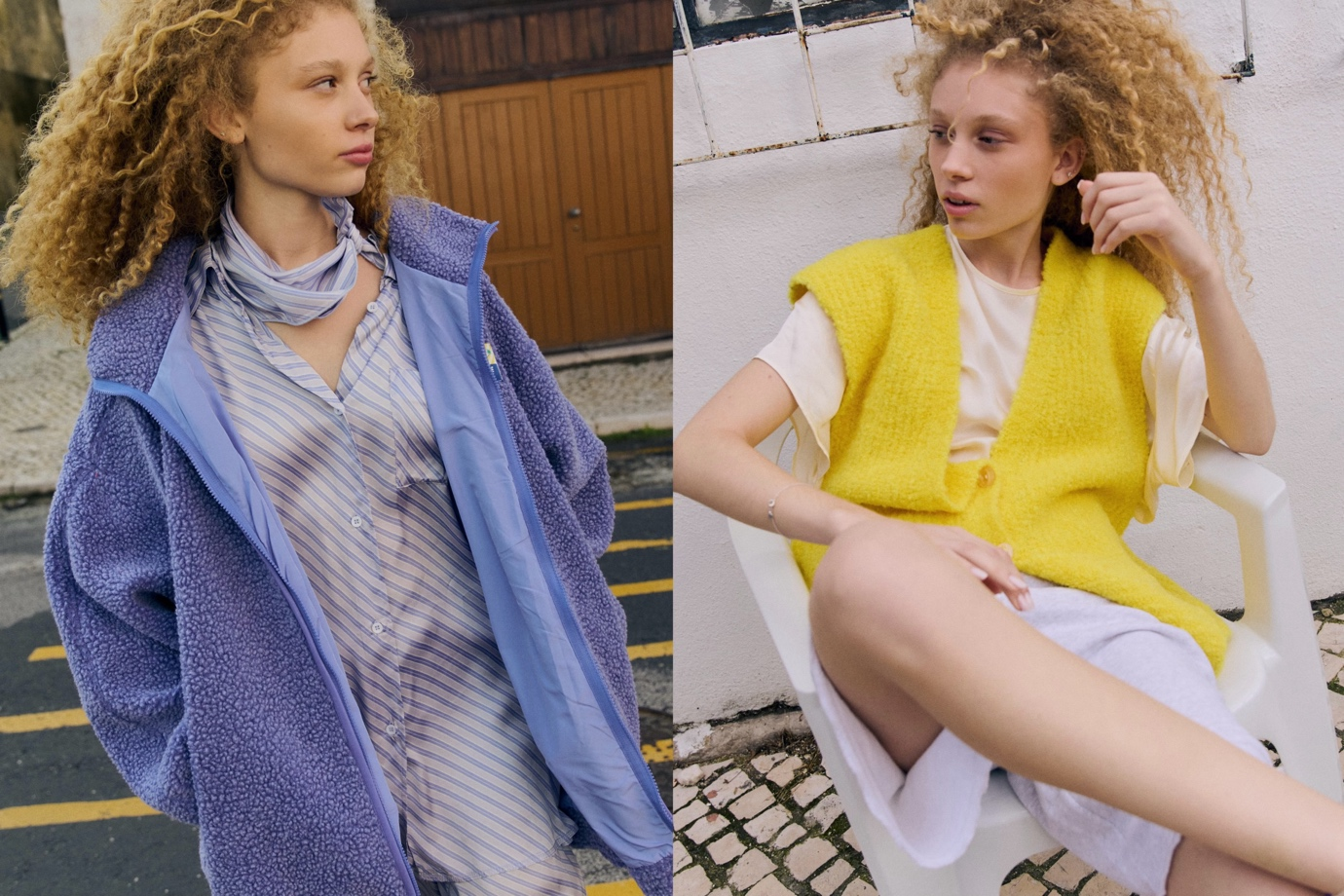 最后,Laundry风格述说回溯时光记忆。正如其名,这组充满怀旧气息的衣橱,致敬1980年代色彩浓烈、充满活力的自助洗衣房文化。复古剪裁在多元面料之间展开对话:极致柔软的针织、丹宁与抓绒相互碰撞,呈现丰富的触感层次。色彩全面回归浓烈而鲜明的复古基调——油桃黄、荧光牵牛花粉与普罗旺斯紫,让春夏衣橱更显大胆与活力。