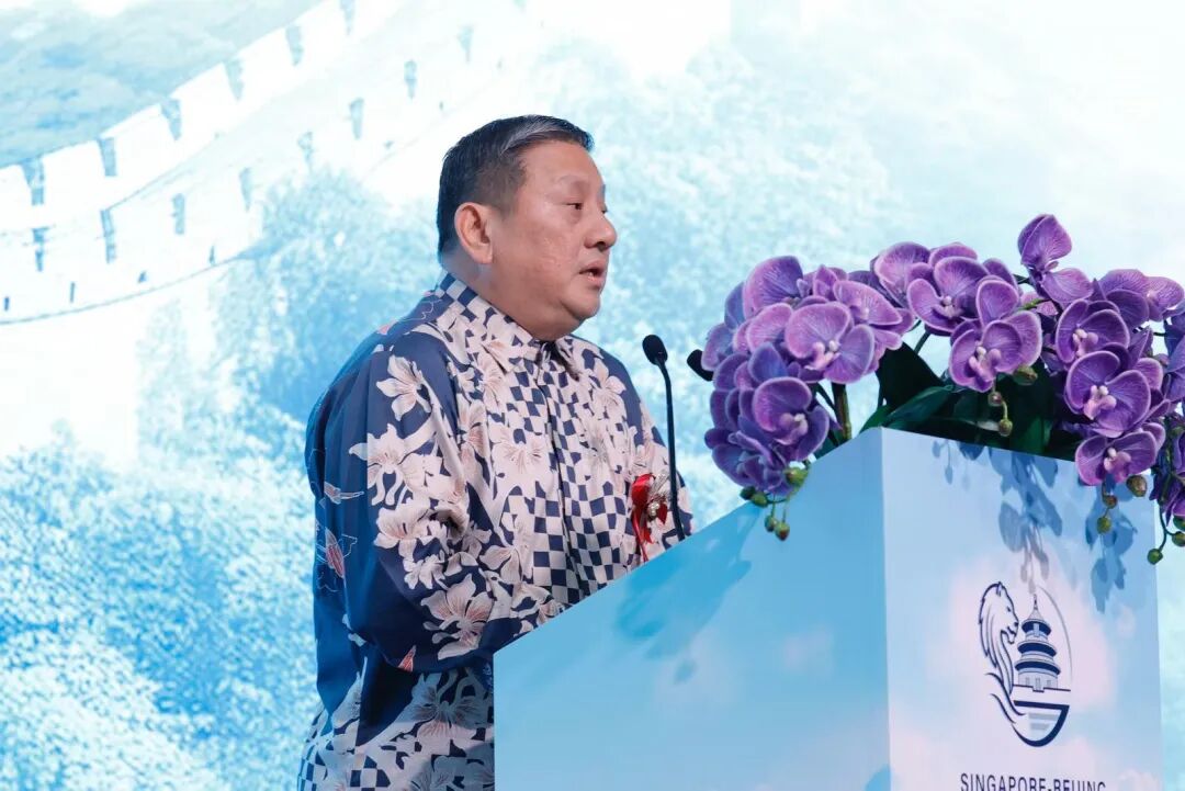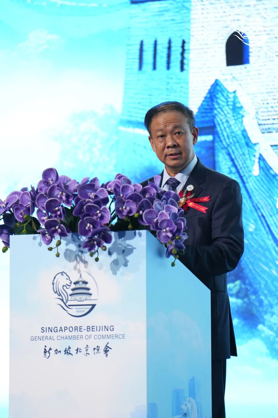 曹忠明大使在致辞中指出,新加坡北京总会的成立正当其时。“今年正值中新建交35周年,两国关系已提升至‘全方位高质量的前瞻性伙伴关系’。总会将为两地企业‘走出去’和‘引进来’搭建重要桥梁。”他进一步表示,新加坡北京总会致力于构建一个高效务实的沟通平台,帮助两地企业更好地理解对方市场,促进投资贸易便利化,同时推动民间文化交流与互鉴。