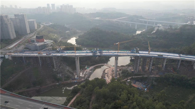 太山二路大桥起点位于两江新区数据谷东环线,为双向6车道交通性主干路,全长626米,设计时速60公里,主桥采用(56+100+56)米连续预应力混凝土刚构结构。大桥建成后,将有效联通东西片区,缓解区域交通压力,提升路网通行效率,助力周边产业布局与城市功能提升,为居民出行与物流运输提供更多便利。