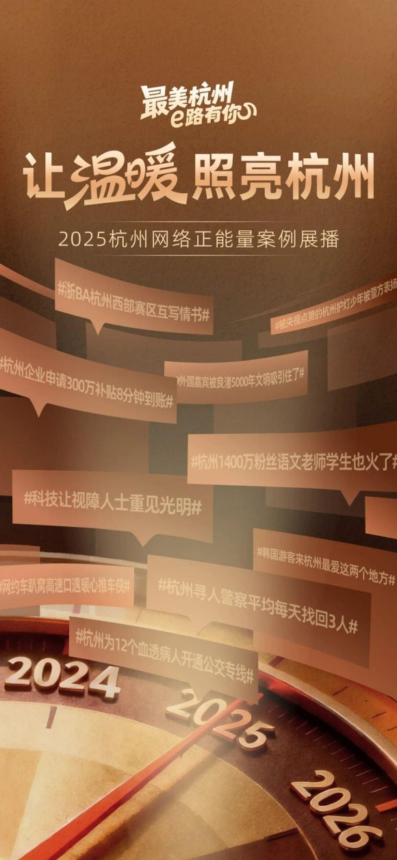当“最美”成为城市的精神坐标,当“e路”串连起无数温暖的相遇,2025年的杭州,正被无数份善意编织成温暖的网。这些温暖人心的正能量故事,仿佛散落在人间画卷上的星辰。它们交织于平凡的街巷里弄,闪烁于奔流的数字云端,辉映在如诗的绿水青山之间,让“善城杭州”的温度,融入城市的每一次呼吸,也深深镌刻进每一个人的心房。