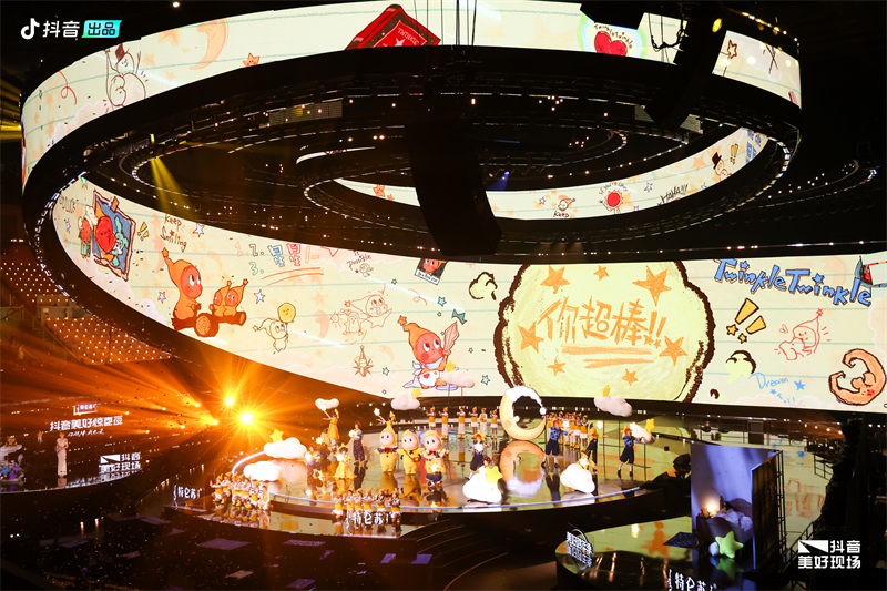 2025抖音美好惊喜夜汇聚了超过20位明星嘉宾和10余位抖音优质创作者,包括实力唱将周深、胡夏、郁可唯和“老戏骨”唐国强等,共同打造了一场跨越屏幕的狂欢。自2023年首度举办以来,抖音跨年晚会已成为年末互联网最受关注的舞台之一,其突破传统舞台设定、将屏幕内外相连的创新形式,持续为观众带来沉浸式体验。今年是星星人首次亮相抖音美好惊喜夜,作为本年度备受喜爱的IP角色,为观众带来别开生面的惊喜演出。