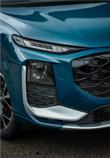 奥迪 Q3 的两级分体式前大灯设计非常突出。LED 日间行车灯和指示灯位于上部,而主大灯模块则布置在下方。这种设计看起来特别现代和紧凑:上部狭窄的灯带突出了车辆的宽度,而下部大面积的前大灯则给人以技术性和功能性的印象。这种设计将细长的车灯模块与车头部分更加紧密地结合在一起,并与宽大的单框格栅和清晰的线条相呼应。数字式日间行车灯还采用了可单独选择的 LED 技术数字灯光特征。这意味着您可以选择不同的日间行车灯设计。