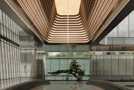 首先,是建筑和园林与山的“深度对话”。建筑以“白云流韵”的线条呼应云山灵感,园林以“引山入园”为核心理念,将白云山的“云、林、泉、石”自然元素,通过现代设计转译为“一轴四幕九境”的东方意境。让居者的归家动线,从看山的旁观,转变为入画的体验。
