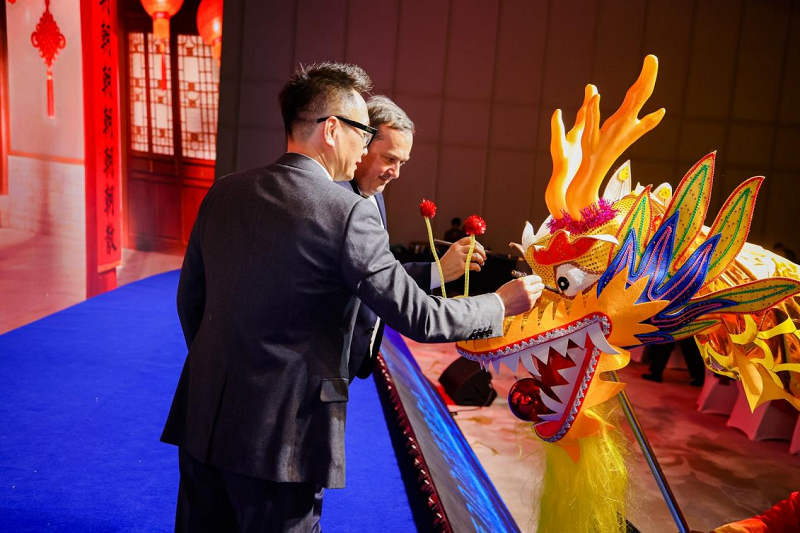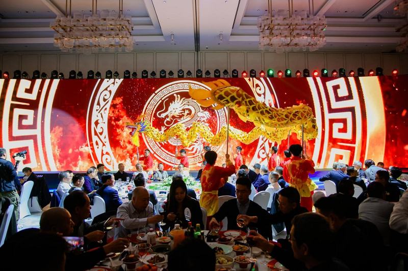 夜幕降临,气势磅礴的舞龙表演《龙腾四海》拉开了新春晚宴的序幕。